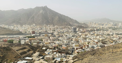 صورة توضح أحياء مكة المكرمة بين الجبال