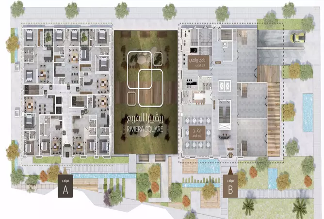 Riviera Square by Alajlan Riviera is an integrated residential project located in the prestigious Downtown Riyadh, Al Murabba masterplan. This modern development features two towers with 153 units, offering residents a lifestyle enriched with premium amenities. As a part of the larger project masterplan, Riviera Square masterplan emphasizes green spaces, leisure areas, and recreational facilities, creating a dynamic residential environment. Unique to this project, residents can enjoy exclusive access to indoor swimming, sports clubs, and three trade fairs, ensuring both relaxation and community engagement within the city’s vibrant district.